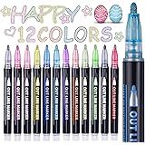 Maqhpu Glitzerstifte Magische Stifte, Weihnachtsgeschenke für Kinder, Geschenke für Mädchen 4-12 jahre, 12 Metallic Outline Stift Zauberstifte für Scrapbook, Basteln Mädchen, Nikolaus Geschenke Kinder